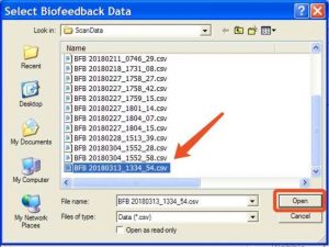 Wybierz najnowszy plik biofeedback i naciśnij Open.