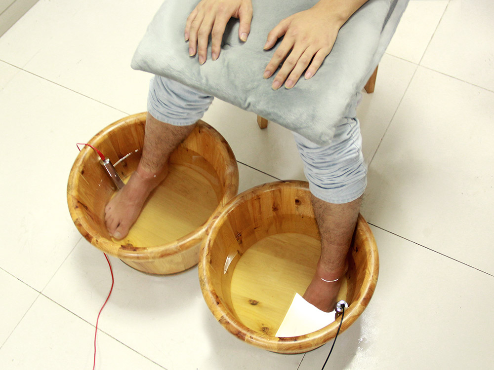 4. Umieść obie stopy w wodzie.