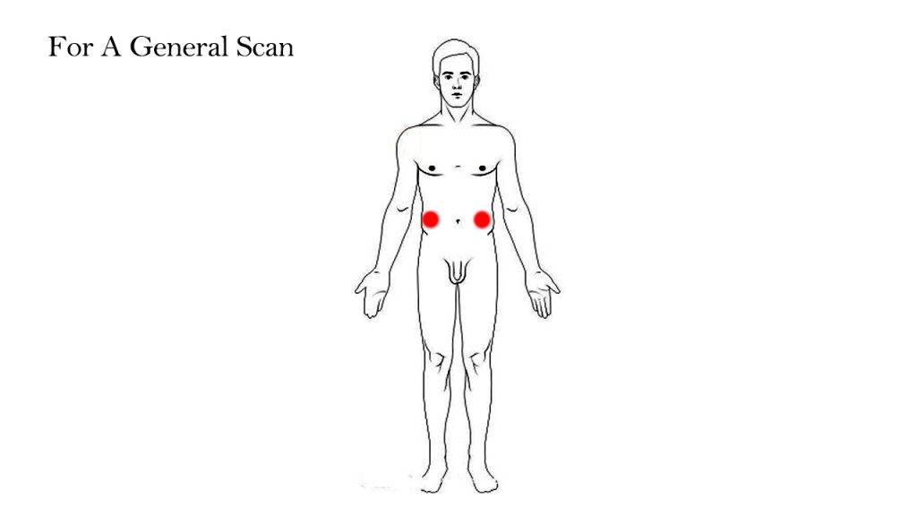 3. Aby wykonać ogólne skanowanie, umieść plastry po lewej i prawej stronie tułowia, w połowie między biodrami i barkami. Sygnał przechodzi przez jelito, które jest głównym narządem, odzwierciedlić stan twojego ciała. Znajduje się tam wiele patogenów.