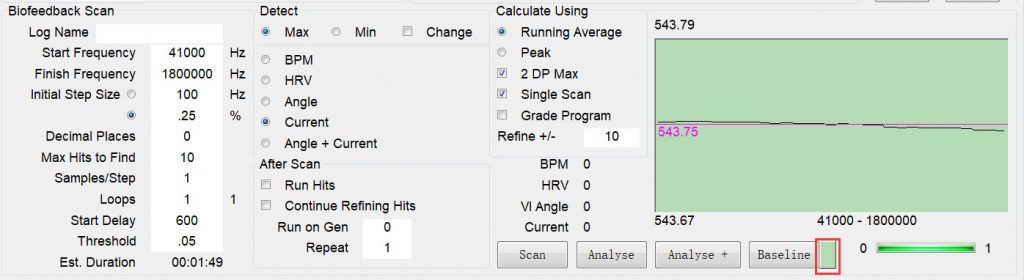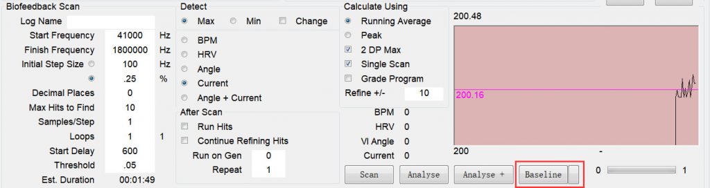 Baseline to bardzo fajna funkcja, która pozwala na określenie sygnału w czasie skanowania biofeedback, gdy nie wykryto żadnej próbki.