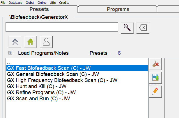 2. Przejdź do zakładki Presets, kliknij> Biofeedback i wybierz preset zgodnie z urządzeniem skanującym. Na przykład chcę użyć Plastry TENS do szybkiego skanowania.