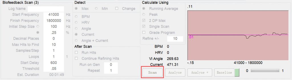 2. Po zakończeniu skanowania Baseline kliknij przycisk scan, aby rozpocząć skanowanie bio-sprzezenie.