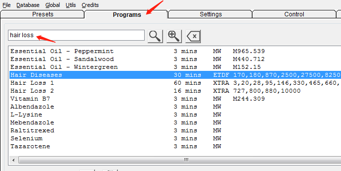 Wpisz "Hair Loss" w pasku wyszukiwania i znajdź odpowiednie programy, których potrzebujesz zgodnie z opisem programu.