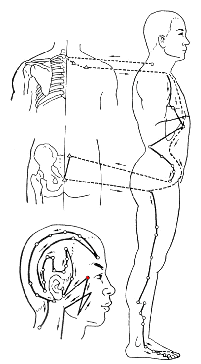 Przez meridiany w ciele płynie cyrkulacja energii, czyli QI, aby zachować zdrowie. Jeśli jednak krążenie zostanie przerwane, pojawi się w ciele choroba. W tradycyjnym leczeniu, naciśnięcie punktów akupunktury może usunąć blokady w powyżej wymienionych meridianach.